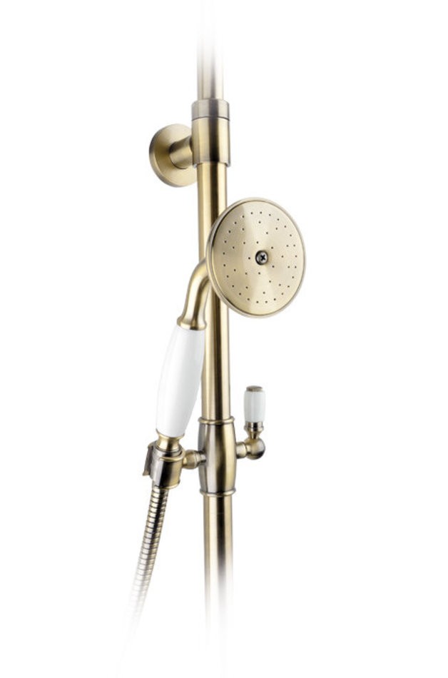 Эксклюзивный дизайн в духе старины. Эта душевая система золотистого цвета выполнена в стиле "Ретро" и отлично подходит для классических интерьеров.