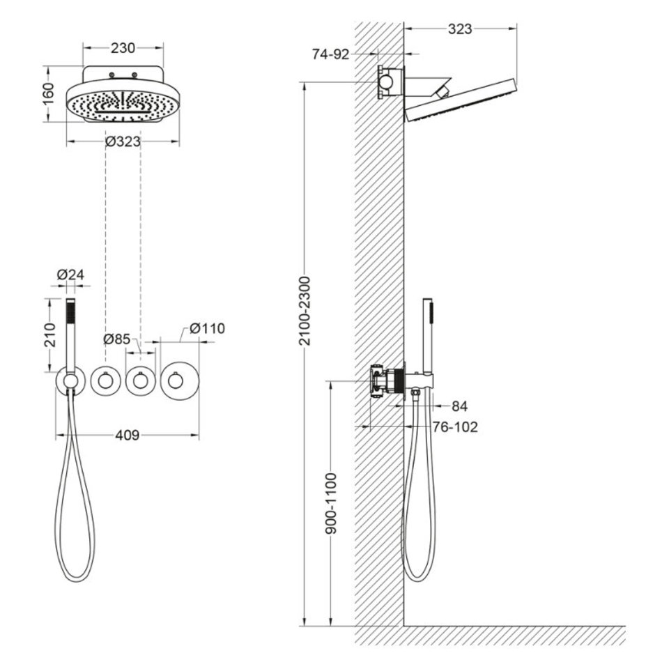 Душевая система с термостатом Timo Saona 2329 относится к премиальному сегменту, предназначена для монтажа в полой или твердой стене. Термостатический картридж поддерживает стабильную температуру воды, обеспечивая максимально комфортные условия для принятия водных процедур. Настенный душ с двумя режимами позволяет принимать водные процедуры в зависимости от настроения. Регулируя напор воды можно получить массажное воздействие различной интенсивности. Используя режим "каскад"- получают седативное (успокаивающее) воздействие на затылочную часть головы или шейный отдел. Основные преимущества встроенной системы: элегантный внешний вид, все коммуникации и крепления спрятаны в стену, снаружи видны только декоративные элементы. Установить встроенную систему можно в любом месте. Использовать такой смеситель очень удобно, регулировка температуры воды осуществляется ручкой термостата (расположена справа). Переключение режимов "каскад", "тропический душ", "ручной душ" и увеличение напора осуществляется поворотом ручек диверторов расположенных слева от термостата. В положении ручек диверторов в положение 12:00 (смеситель выключен). Смеситель может работать в нескольких режимах одновременно"каскад"+"ручной душ", "тропический душ"+"ручной душ".
