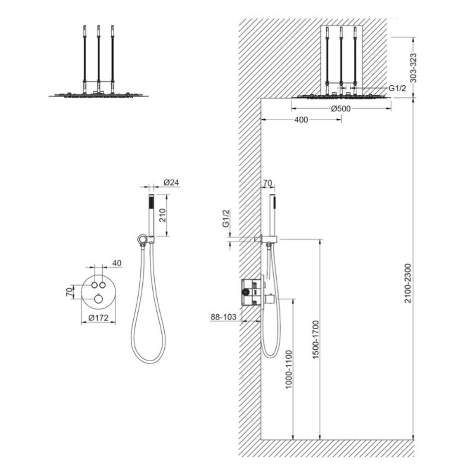 Встраиваемая душевая система с термостатом Timo Saona 2370 относится к премиальному сегменту, предназначена для монтажа в полой или твердой стене. Термостатический картридж поддерживает стабильную температуру воды, обеспечивая максимально комфортные условия для принятия водных процедур. Встроенный потолочный душ большого размера создает имитацию проливного дождя, вода обливает человека целиком. Основные преимущества встроенной системы: элегантный внешний вид, все коммуникации и крепления спрятаны в стену и потолок, снаружи видны только декоративные элементы. Установить встроенную систему можно в любом месте. Использовать такой смеситель очень удобно, регулировка температуры воды осуществляется ручкой термостата (расположена снизу). Для включения режима «Ручной душ» нажмите клавишу на панели с соответствующим символом. При повторном нажатии кнопки смеситель прекратит работу. Для включения режима «Тропический душ» нажмите клавишу с символом «Тропический душ». При включении режимов «Тропический душ» и «Ручной душ» напор воды максимальный и не регулируется.