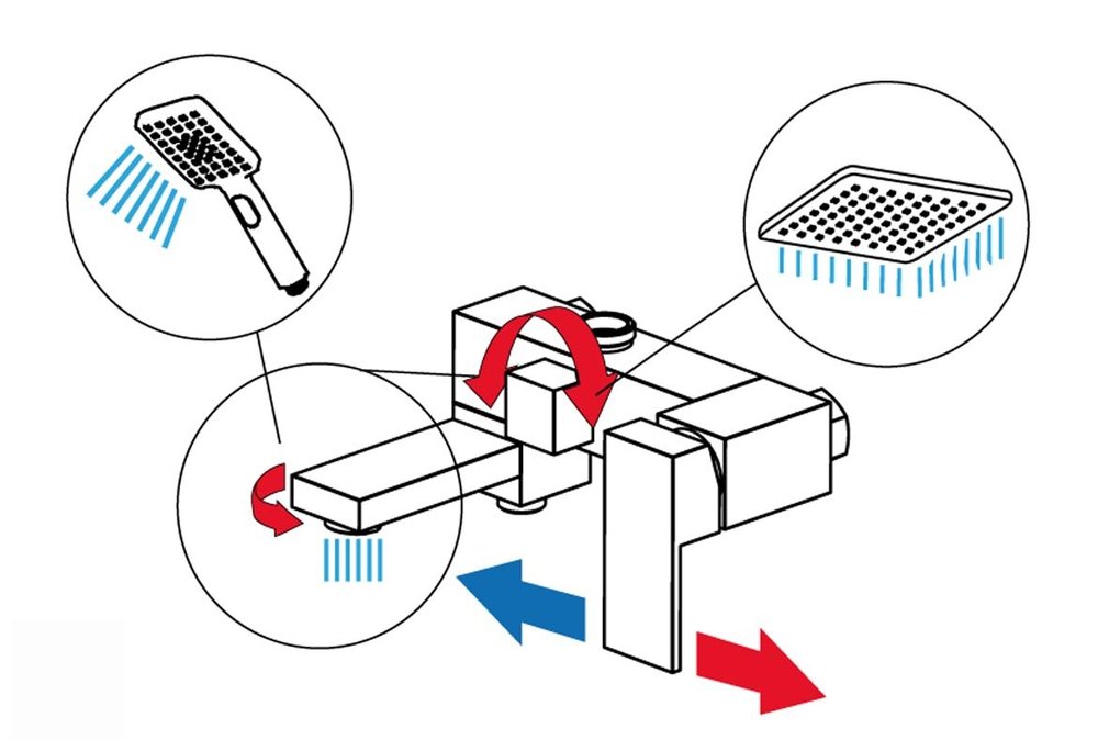 - Душевая система для ванной с квадратной лейкой в стиле модерн