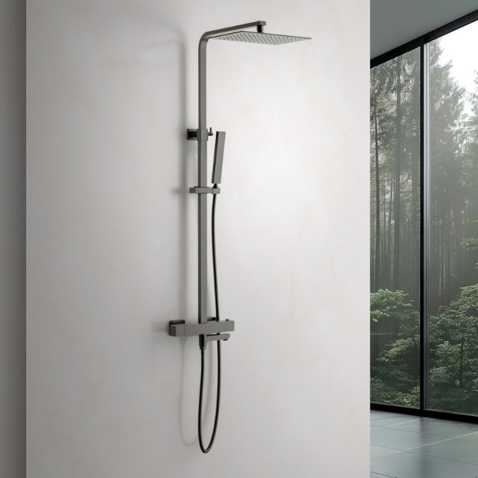 - Душевая система с термостатом с прямоугольной лейкой в стиле модерн