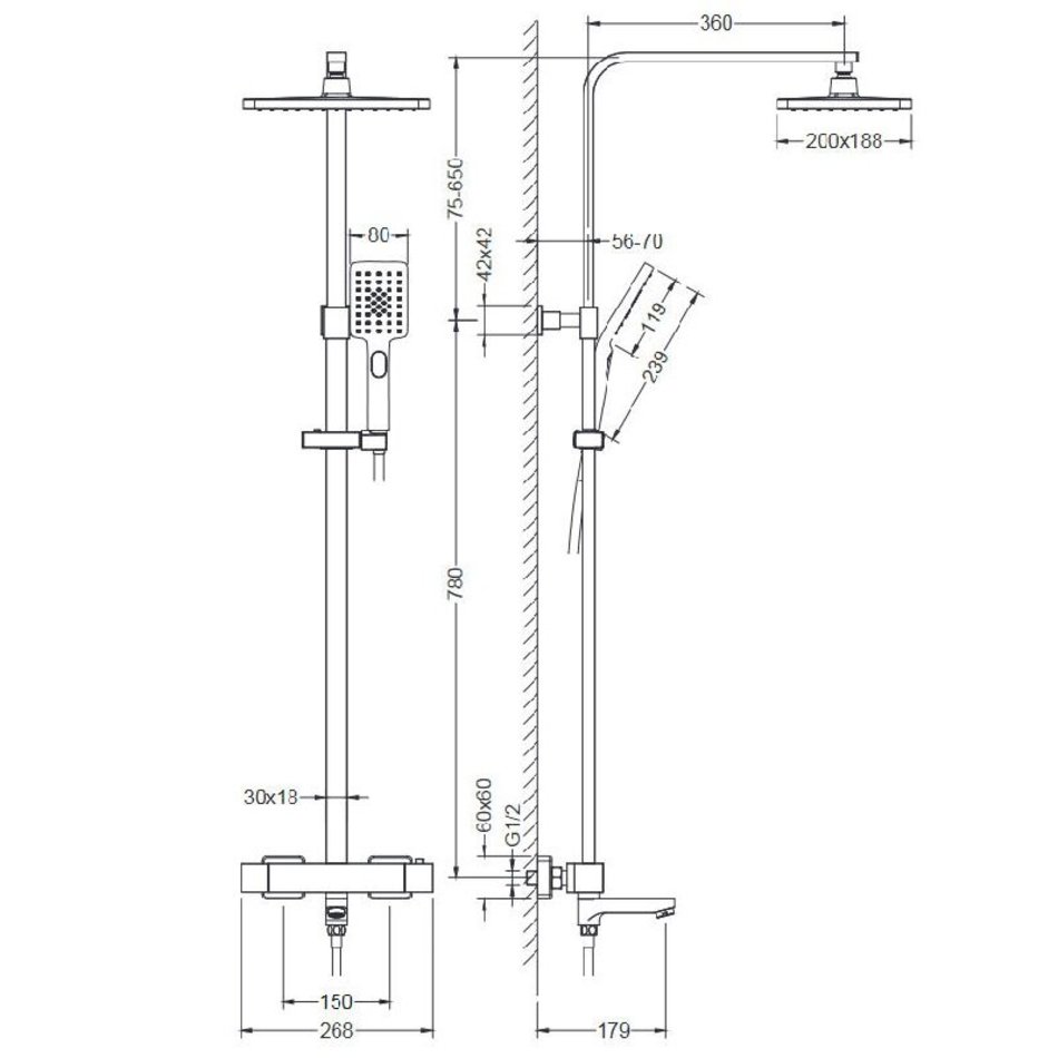 - Душевая система с термостатом с прямоугольной лейкой в стиле модерн
