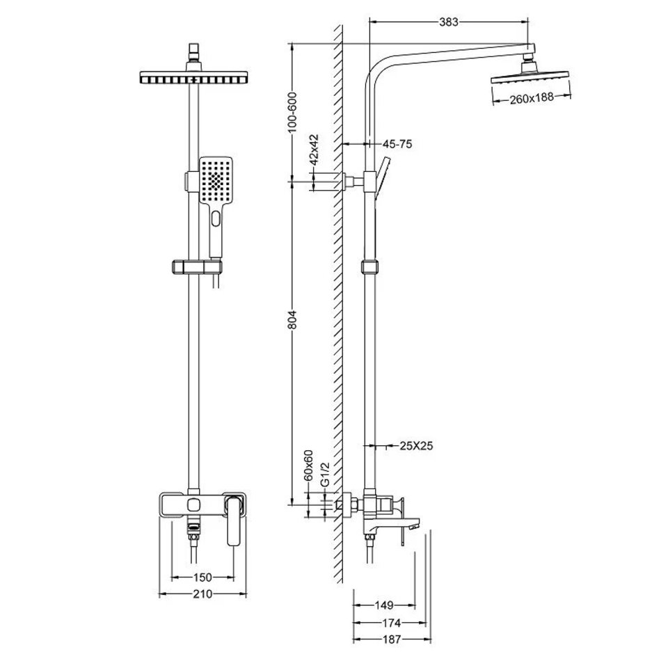 - Душевая стойка сделана из латуни класса А. Материал душевой лейки: пластик