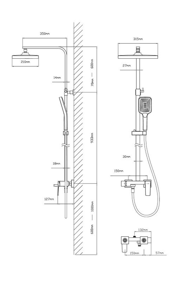 Душевая система Vincea Cube VSFS-4C12GM, с поворотным изливом, воронёная сталь, gunmetal