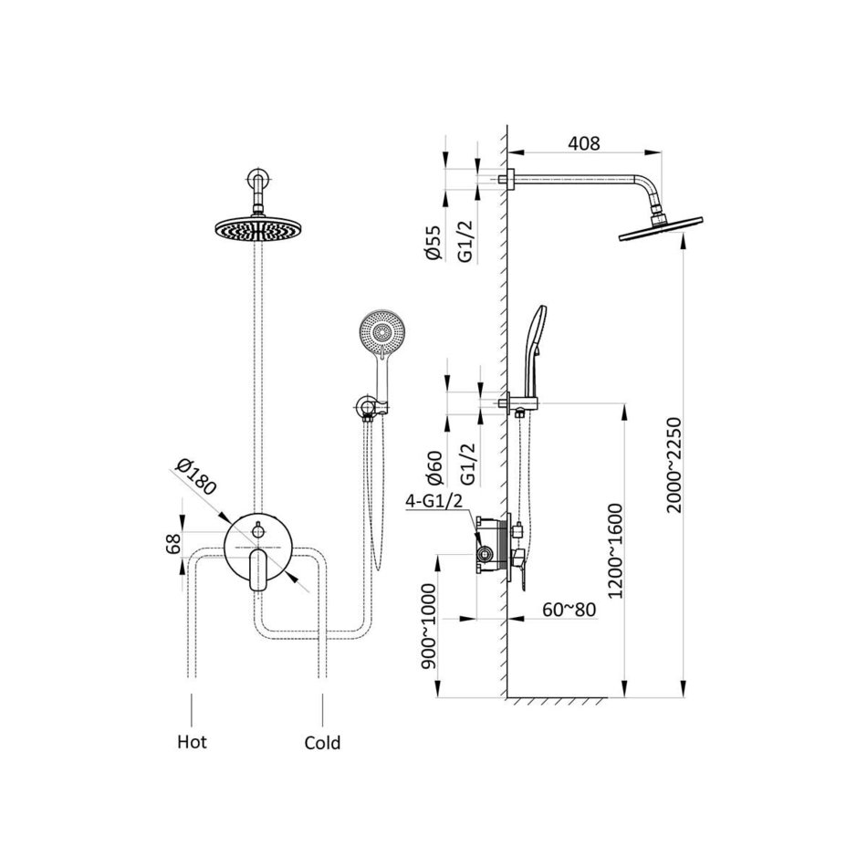 Состав комплекта: верхний душ, ручной душ, смеситель со встраиваемой частью