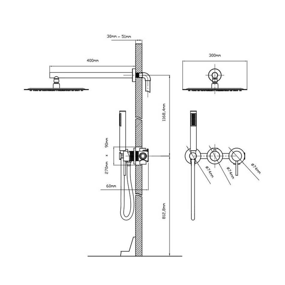 - Комплектация: верхний душ, ручной душ, смеситель со встраиваемой частью