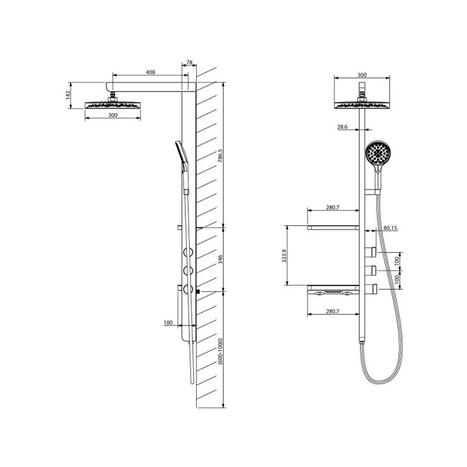- Состав комплекта: верхний душ, ручной душ, смеситель со встраиваемой частью