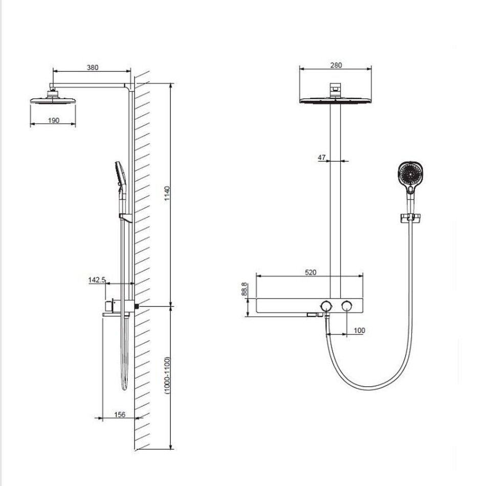 Душевая система Vincea Inspire VSFS-3I13TMB, термостатическая, с изливом, с подсветкой, цвет черный