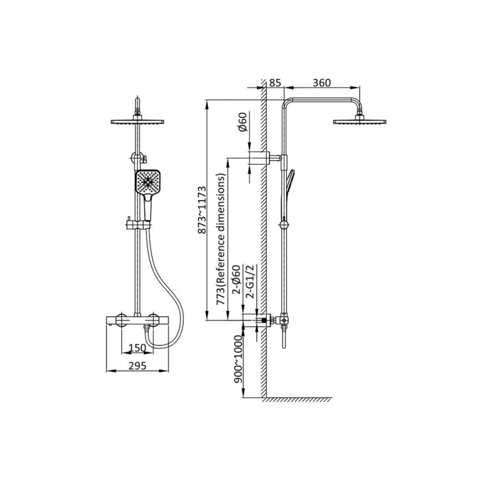Душевая система Vincea Next термостатическая, воронёная сталь, gunmetal, VSFS-1N0TGM