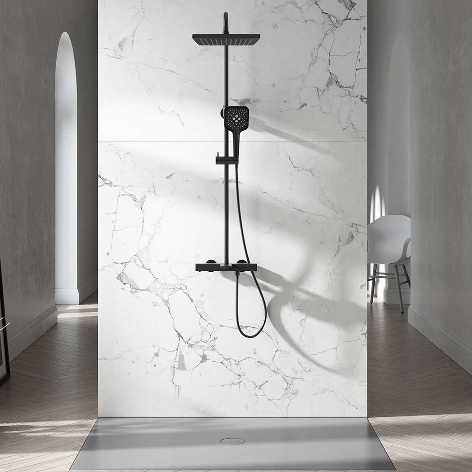 Душевая система Vincea Next VSFS-1N1TMB, термостатическая, с изливом, черный матовый
