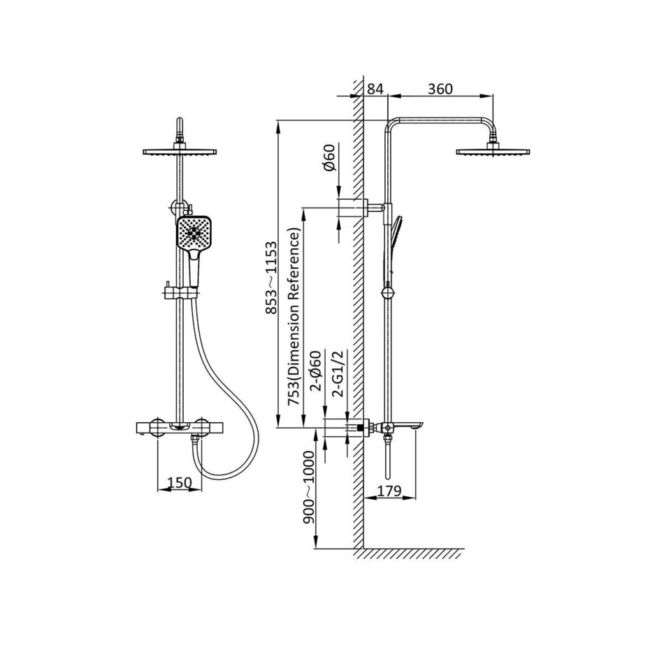 - Форма верхнего душа: квадратный