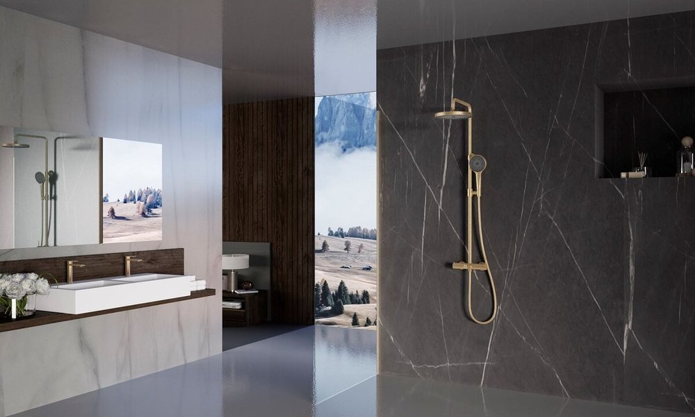 Душевая система Vincea Rim VSFS-2RM1BG, с изливом, цвет брашированное золото