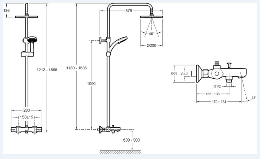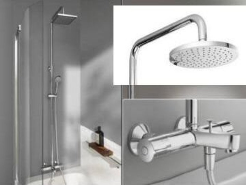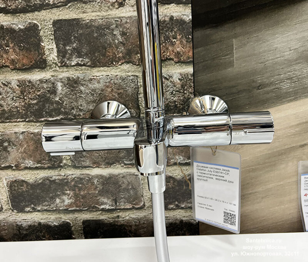 Душевая стойка Jacob Delafon July E99741-CP с термостатическим смесителем, верхний душ круглый