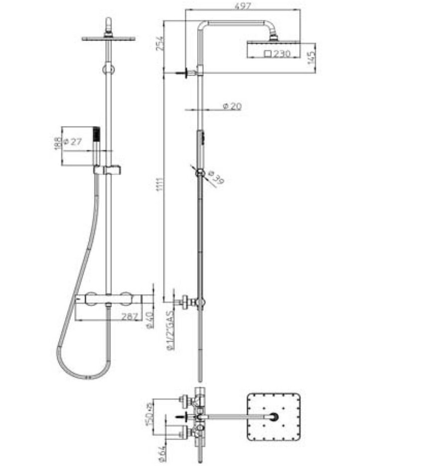 Душевой комплект Bossini Cosmo L10174.030, со смесителем, верхний душ квадратный