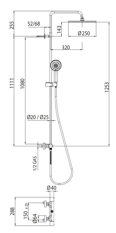 Душевой комплект Bossini Elios L10049.030, с термостатом