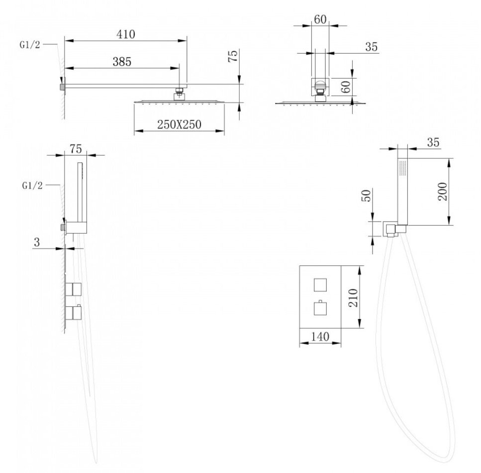 Душевая система Abber Daheim, термостат, без излива, верхний душ, душевая лейка, хром, AF8251