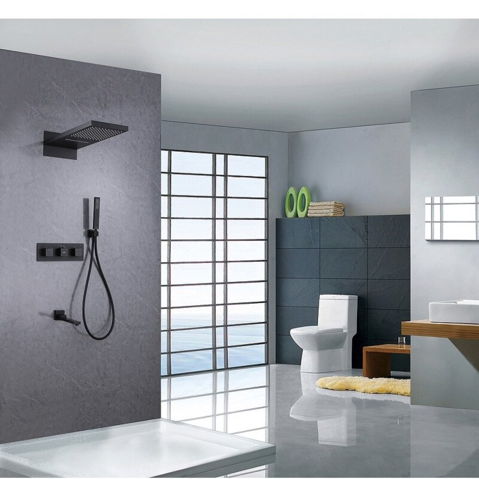 Душевая система Abber Daheim, термостатическая, на 3 потребителя, цвет черный матовый, AF8253B