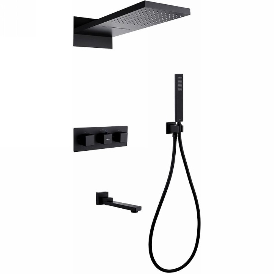 Душевая система Abber Daheim AF8253B, термостатическая, на 3 потребителя, цвет черный матовый