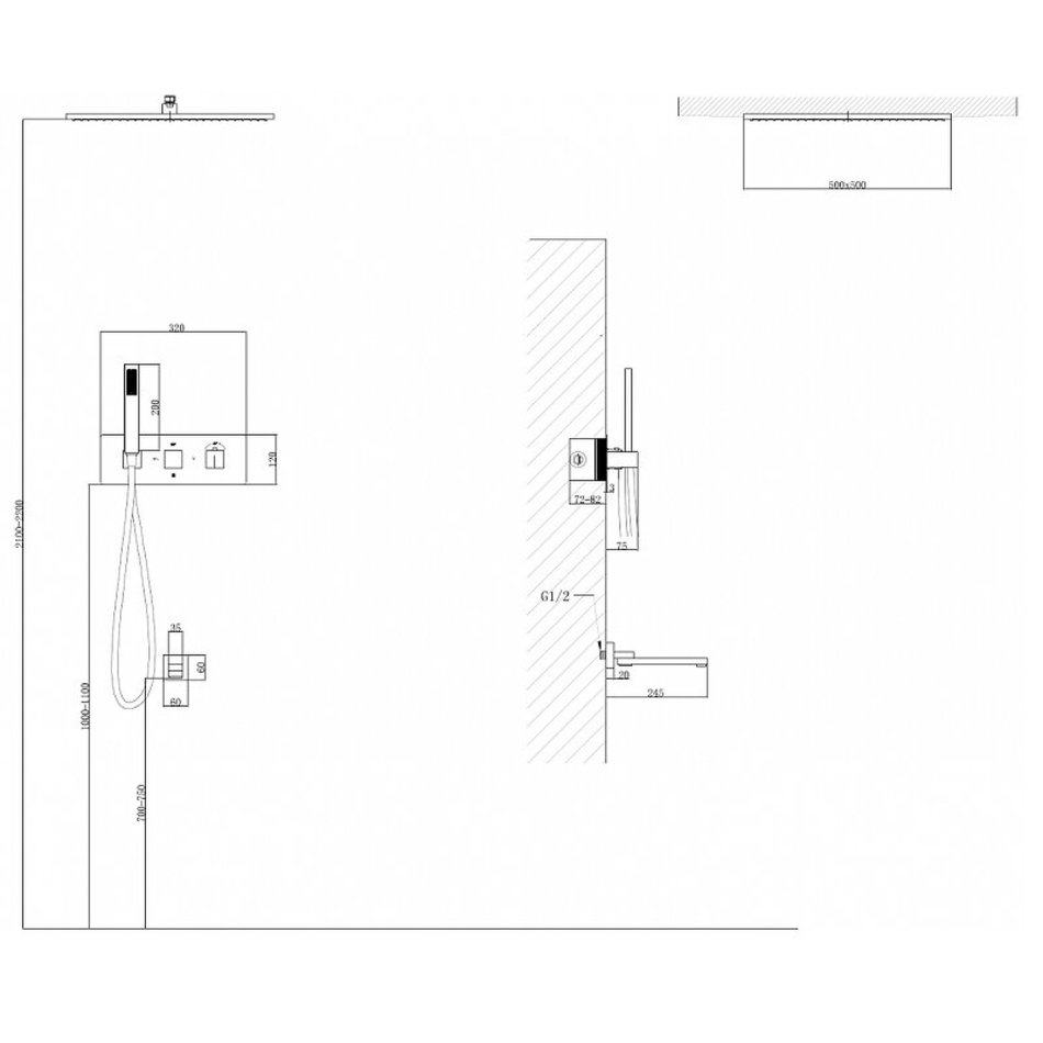 - Размер верхнего душа (ШхД): 500х500 мм.