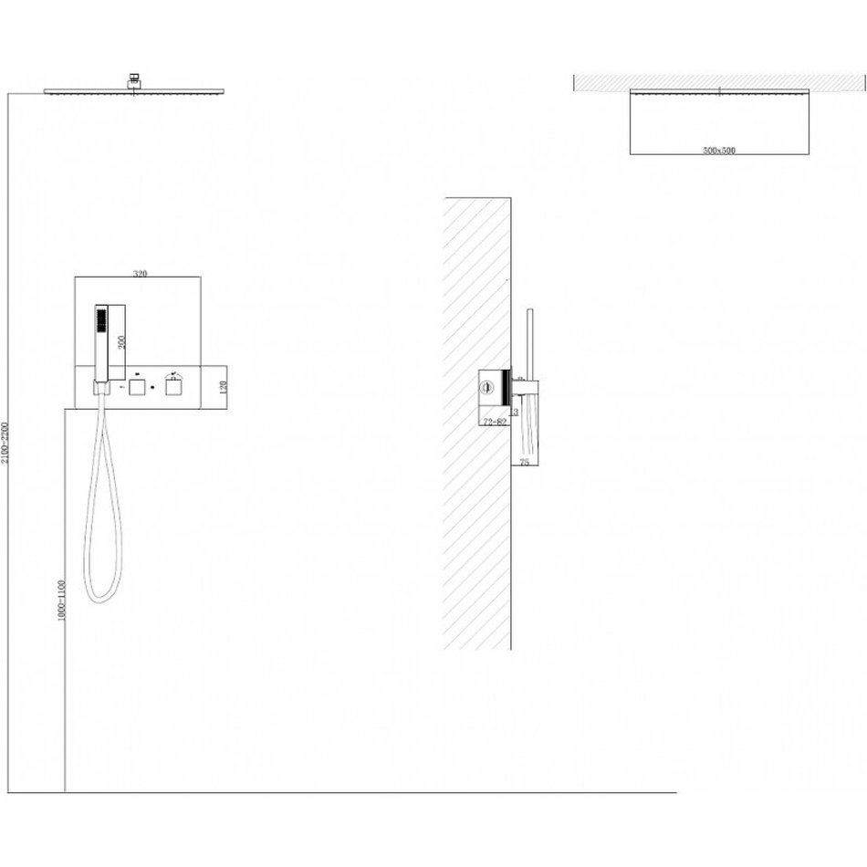 - Размер верхнего душа (ШхД): 500х500 мм.
