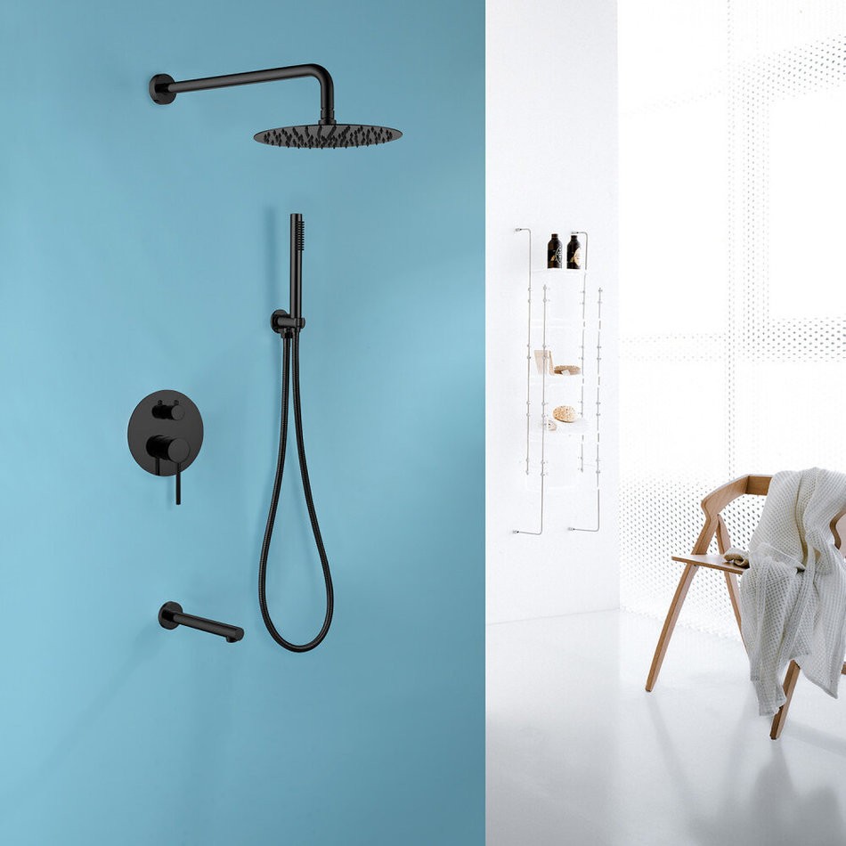 Душевая система Abber Emotion AF8817B, излив, верхний душ, душевая лейка, черный матовый