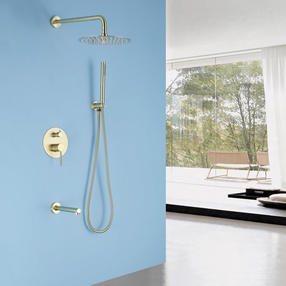 Душевая система Abber Emotion AF8817G, излив, верхний душ, душевая лейка, золото матовое