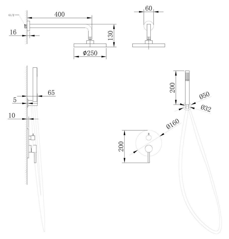 Душевая система Abber Emotion AF8818, без излива, верхний душ, душевая лейка, хром