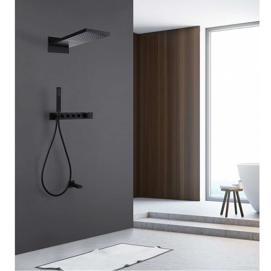 Душевая система Abber Rund AF8753B, термостатическая, на 3 потребителя, цвет черный матовый