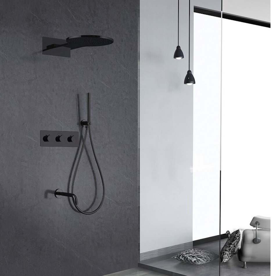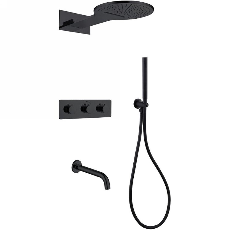 Душевая система Abber Wasser Kreis AF8150B, термостатическая, на 3 потребителя, цвет черный матовый