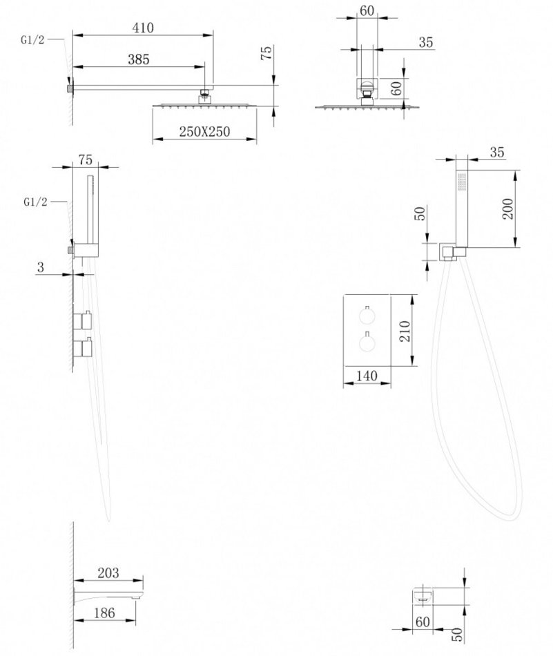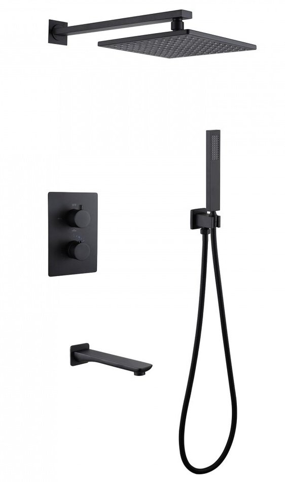 Душевая система Abber Weiss Insel AF8050B, термостат, излив, верхний душ, душевая лейка, черный матовый