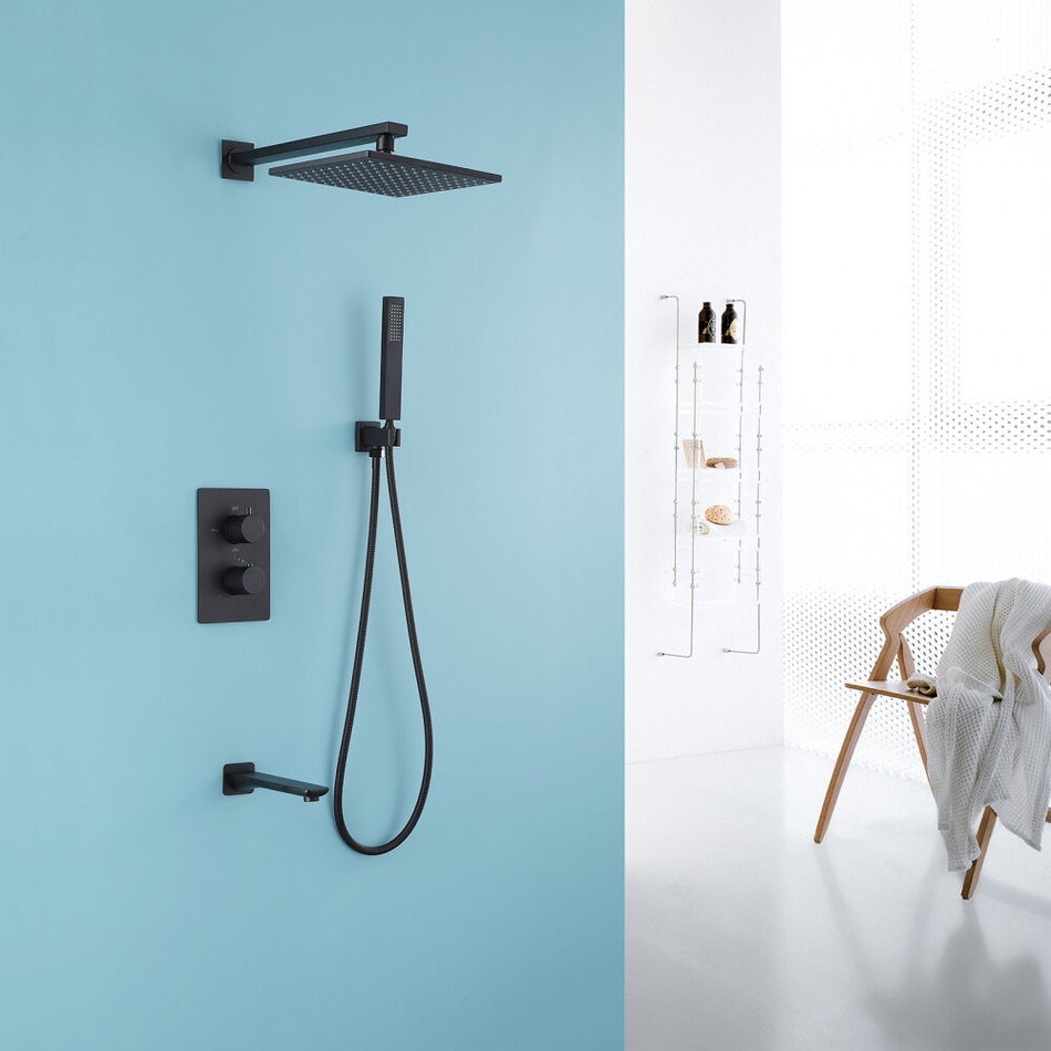 Душевая система Abber Weiss Insel, термостат, излив, верхний душ, душевая лейка, черный матовый, AF8050B