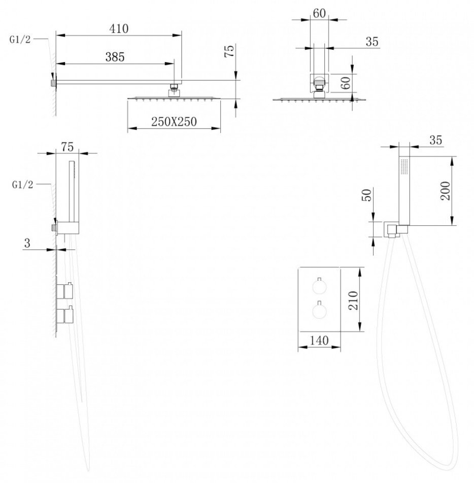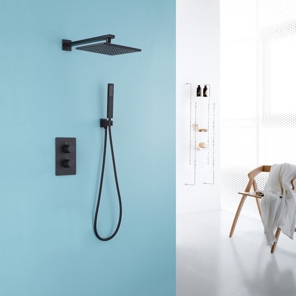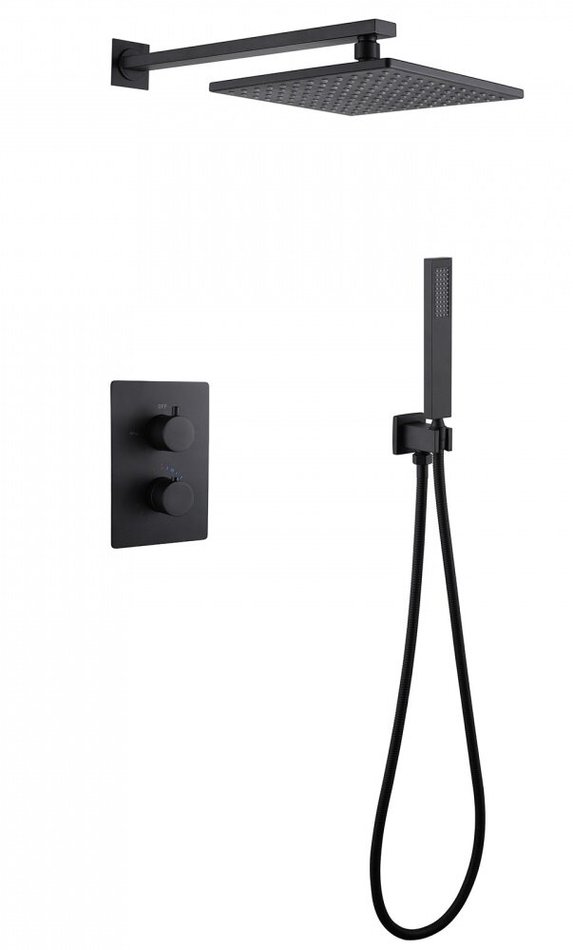 Душевая система Abber Weiss Insel AF8051B, термостат, без излива, верхний душ, душевая лейка, черный матовый
