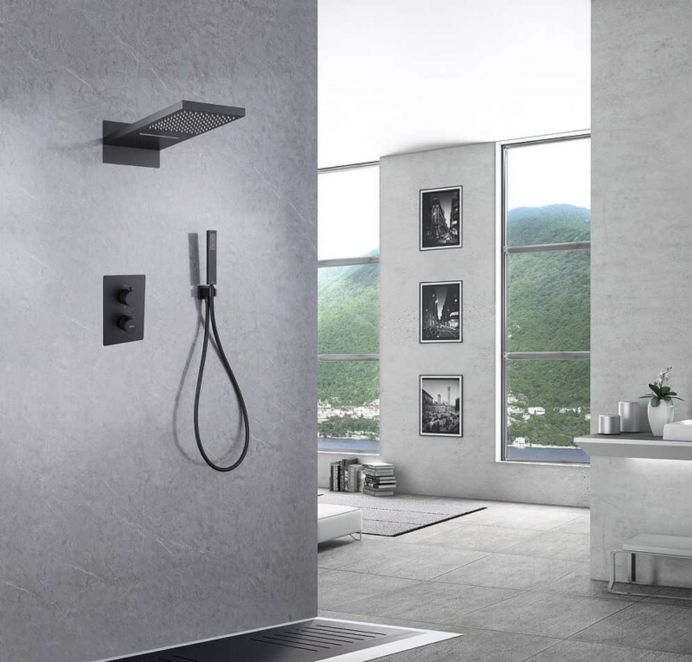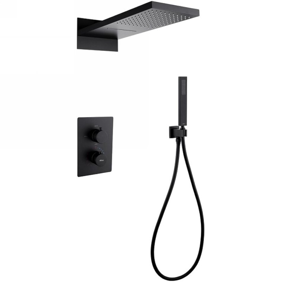 Душевая система Abber Weiss Insel AF8052B, термостатическая, на 3 потребителя, цвет черный матовый