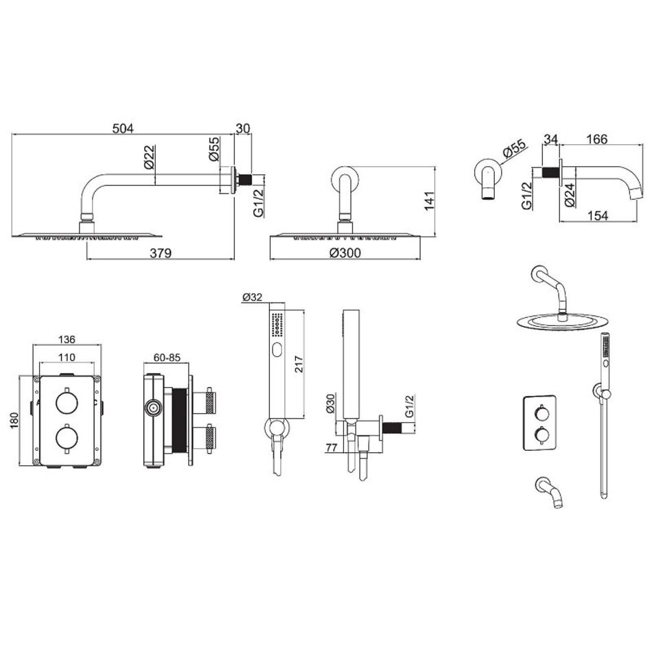 Душевая система Allen Brau Priority термостатическая, верхний и ручной душ, излив, никель брашированный, 5.31014-BN