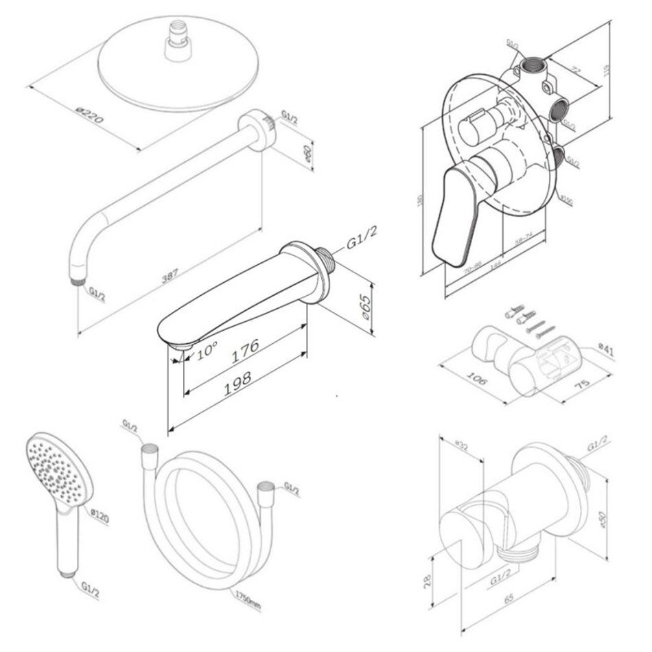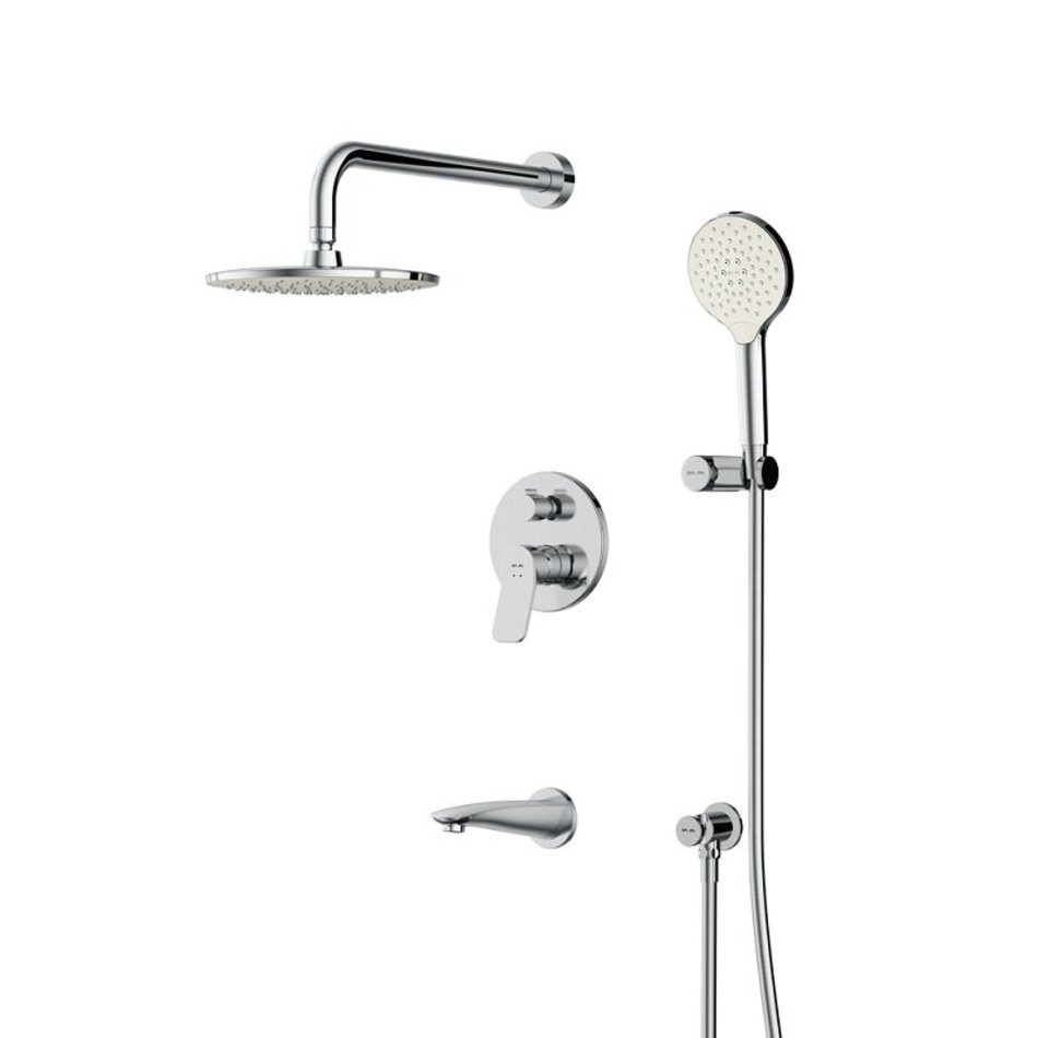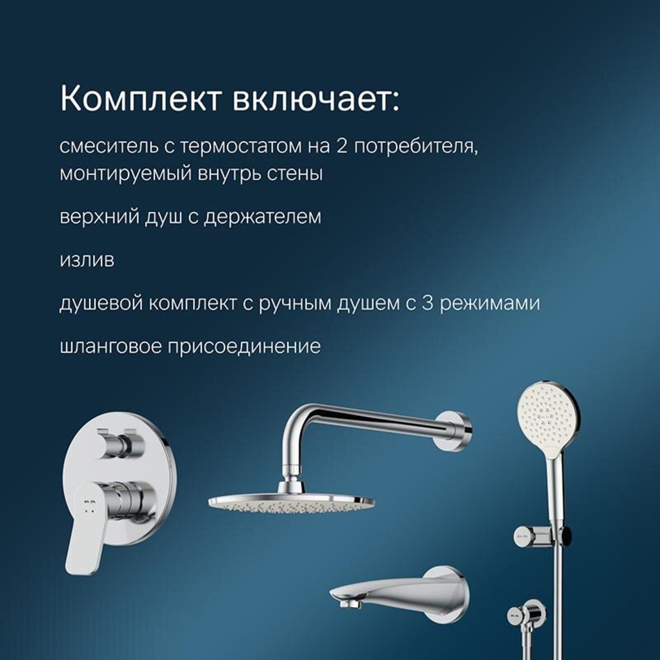 Набор встроенного оборудования X-Joy - идеальное решение для вашей ванной комнаты. Встроенный механизм освобождает ванную комнату от лишних деталей, превращая пространство в идеальное место для себя. Набор включает в себя: верхний тропический душ 22 см, ручной душ, держатель ручного душа, излив и смеситель.