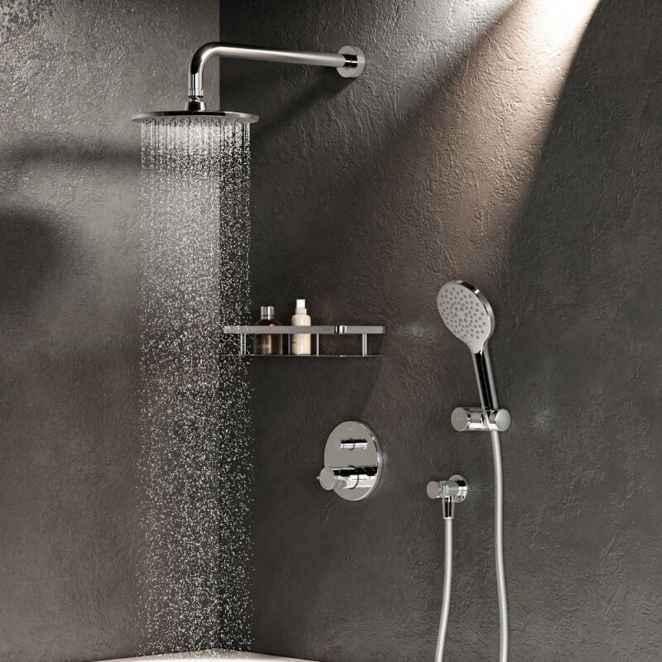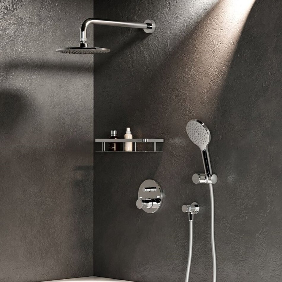 Набор встроенного оборудования X-Joy - идеальное решение для вашей ванной комнаты. Встроенный механизм освобождает ванную комнату от лишних деталей, превращая пространство в идеальное место для себя. Набор включает в себя: верхний тропический душ 22 см, ручной душ, держатель ручного душа и смеситель.
