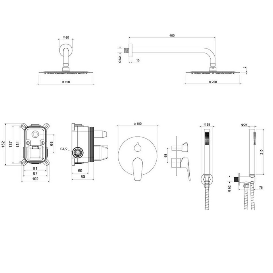 - Верхний душ 250х2 мм из нерж.