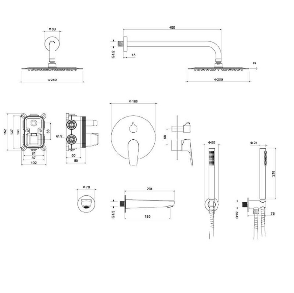 - Душевой гарнитур: лейка, шланг, шланговое подсоединение с держателем