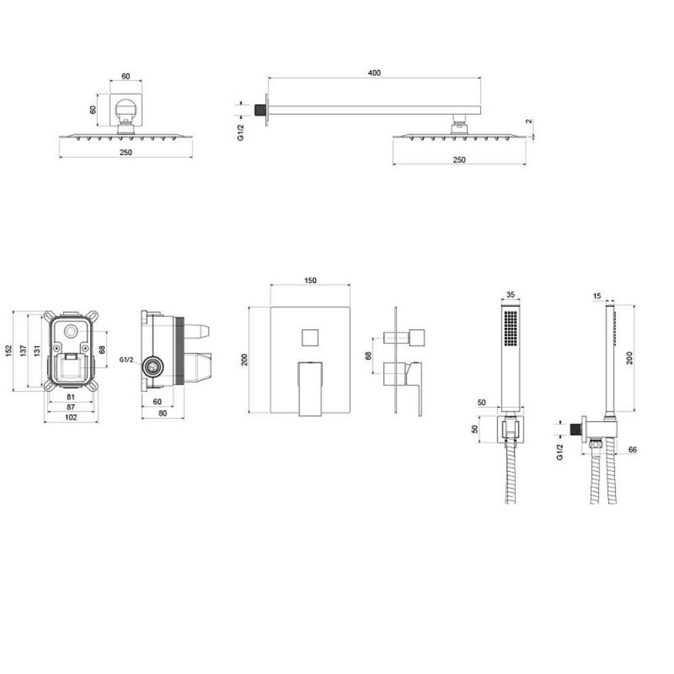 - Смеситель из латуни с установочной коробкой на 2 потребителя (внешняя и скрытая часть)