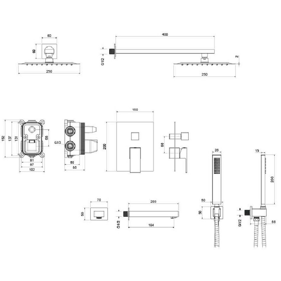 - Душевой гарнитур: лейка, шланг, шланговое подсоединение с держателем