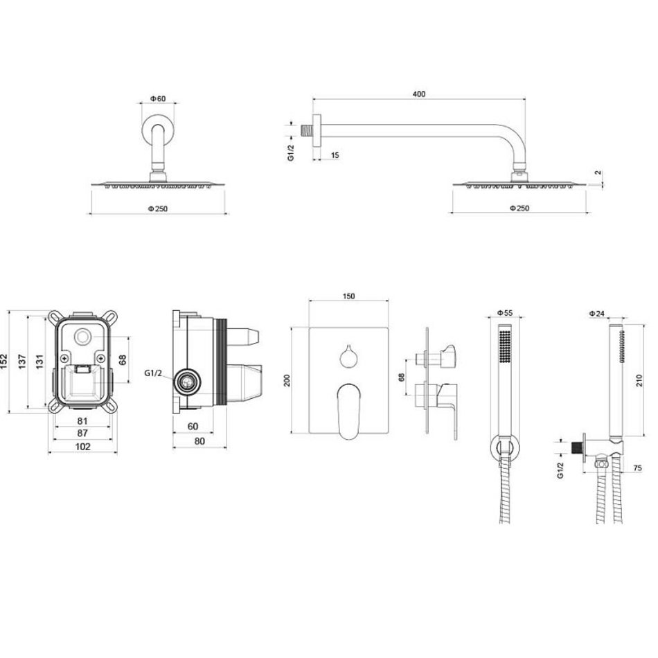 - Смеситель из латуни с установочной коробкой на 2 потребителя (внешняя и скрытая часть)