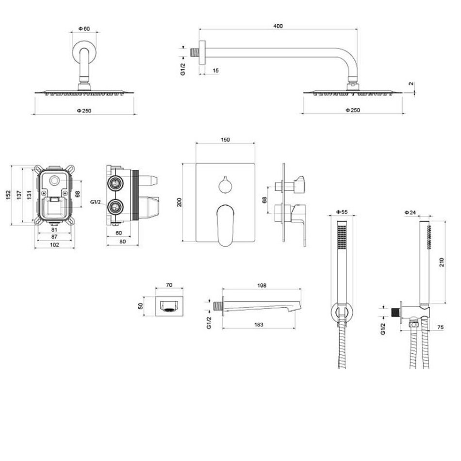 - Душевой гарнитур: лейка, шланг, шланговое подсоединение с держателем