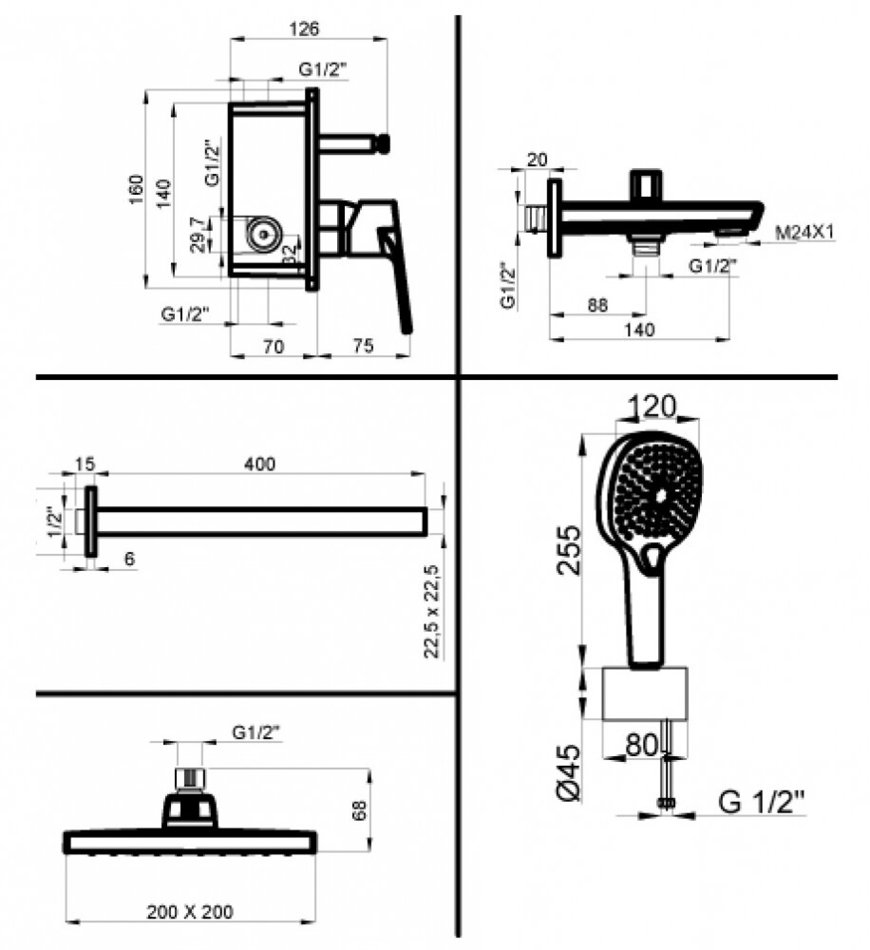 - Душевая лейка: 12 x 25.5 см, 1 режим
