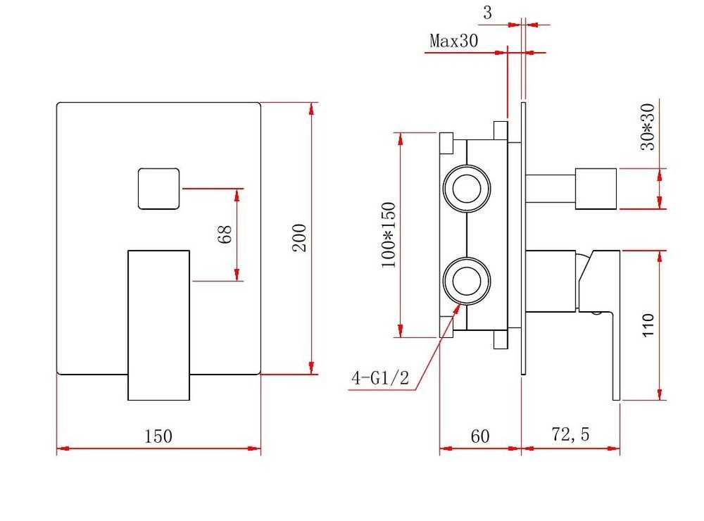 Душевая система Berges Nardis 2S Black, скрытый монтаж, черный матовый, 071002