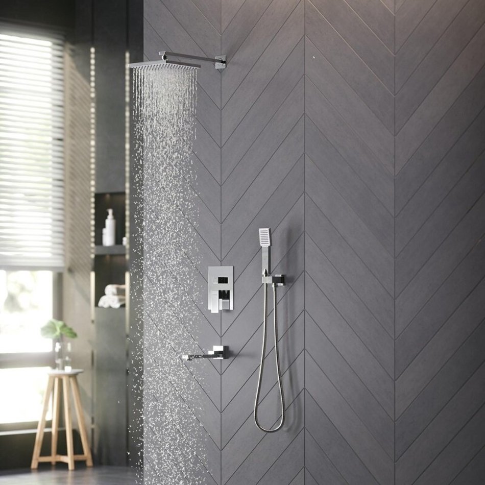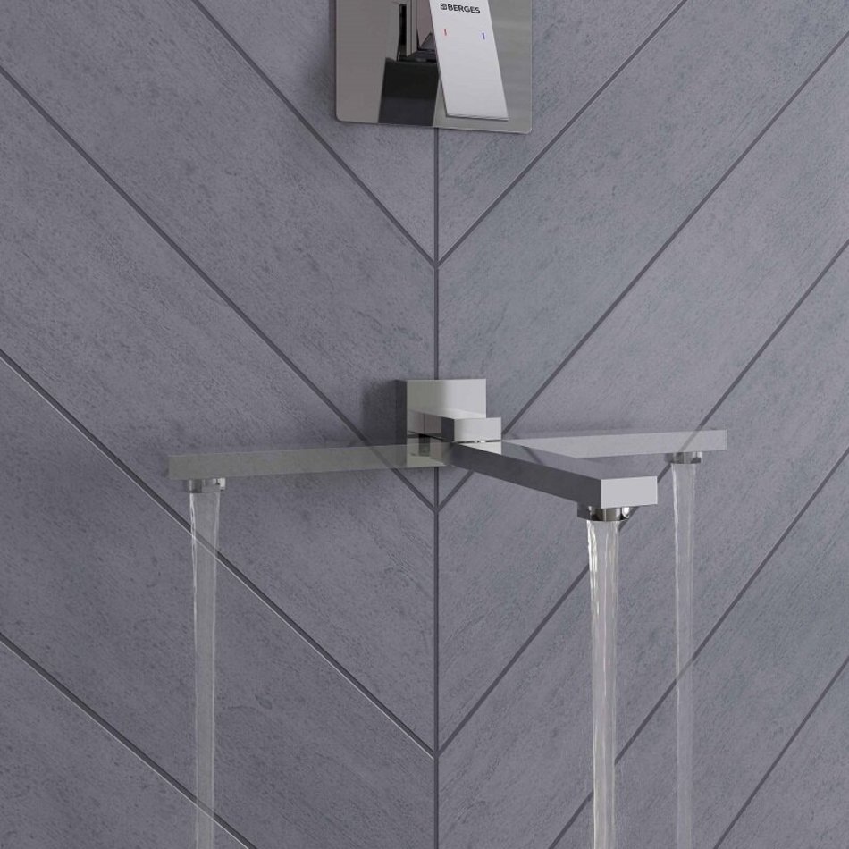 Душевой комплект BERGES NARDIS 3S - встраиваемый душевой комплект обладает трёхрежимной системой и состоит из верхней лейки - «тропического ливня», ручного душа, поворотного излива и смесителя.