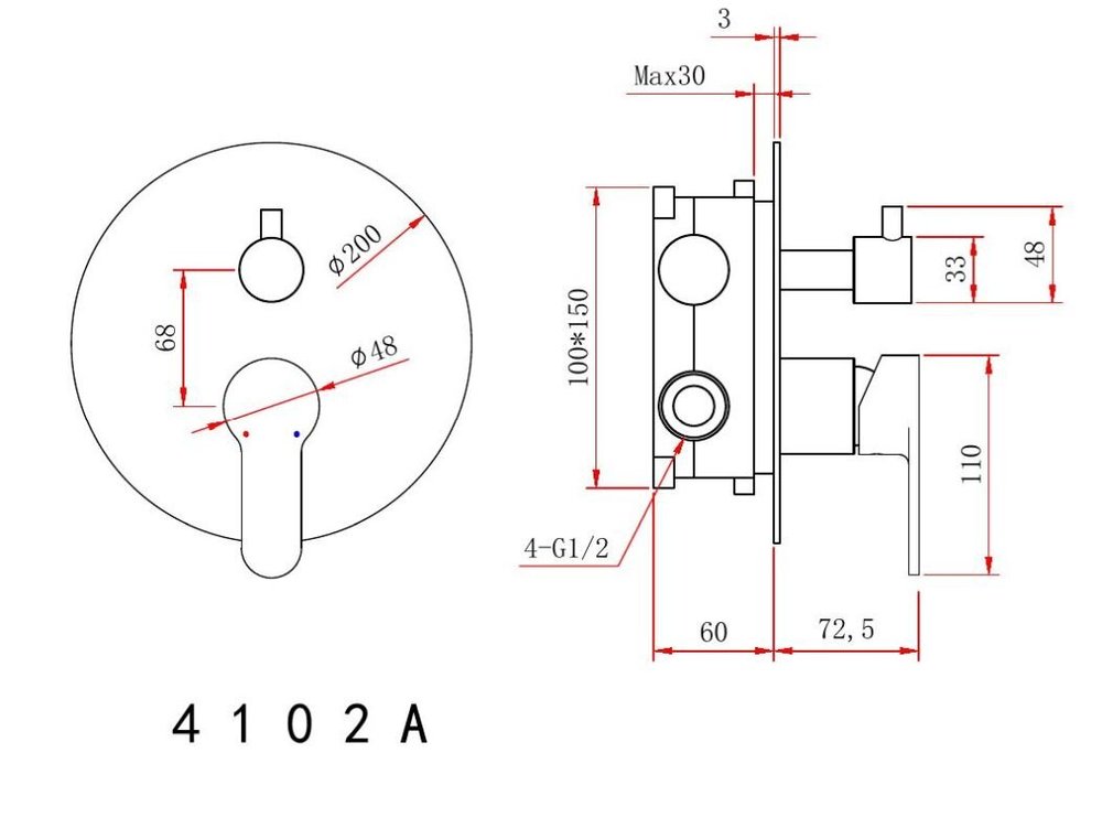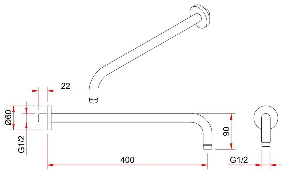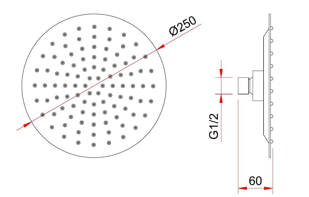 - Форма верхнего душа: круглая