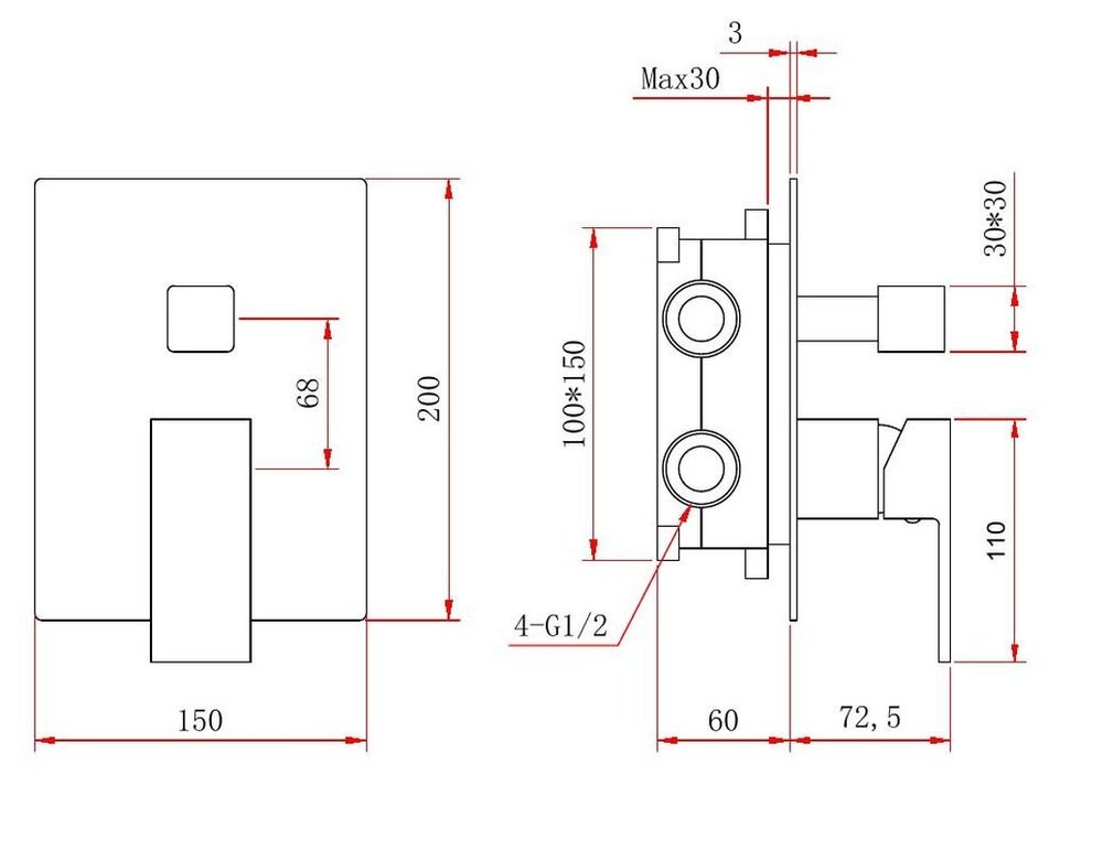 Душевая система Berges Ventas 3S Black, скрытый монтаж, черный матовый, 073006