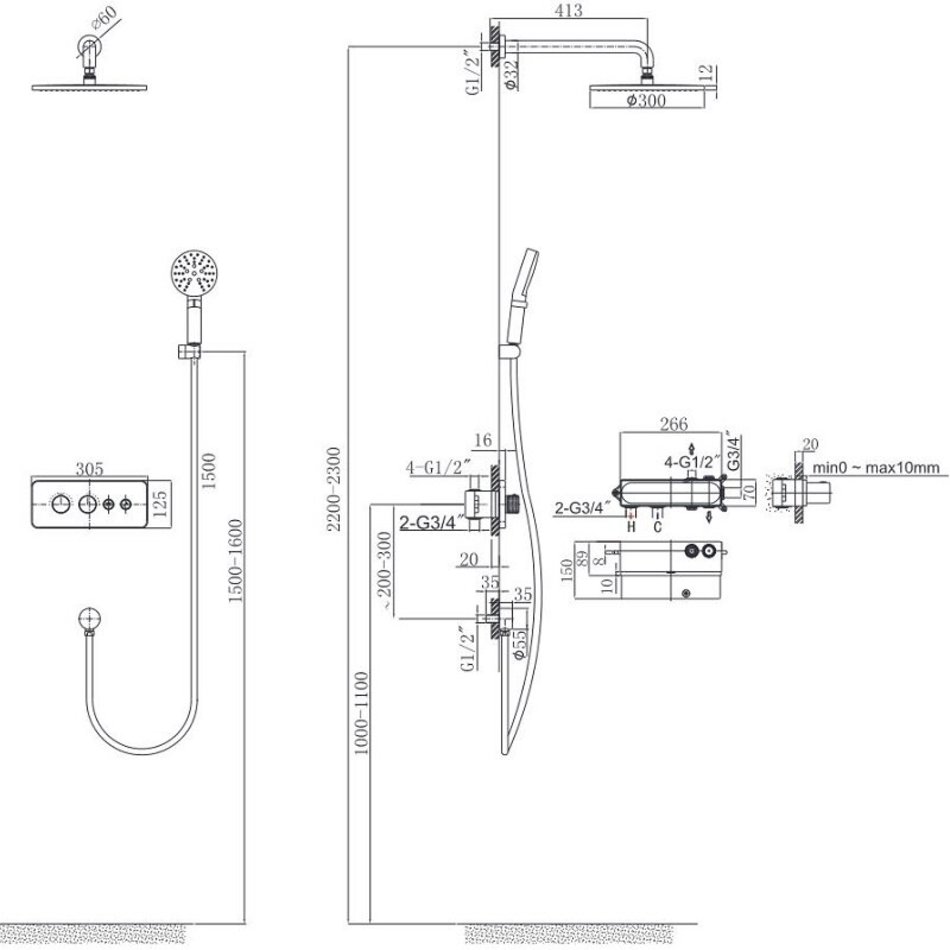 - Штанга для душа: нержавеющая сталь 56,5 х 55,5 х 35 мм