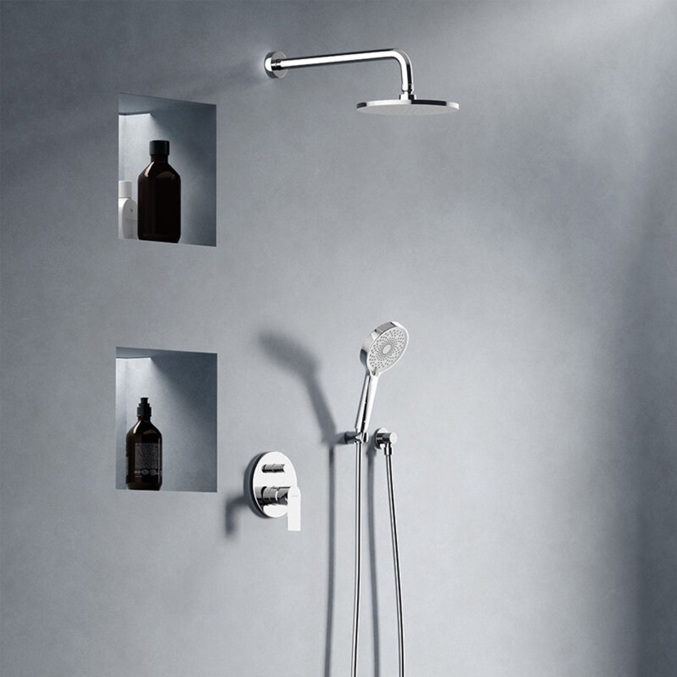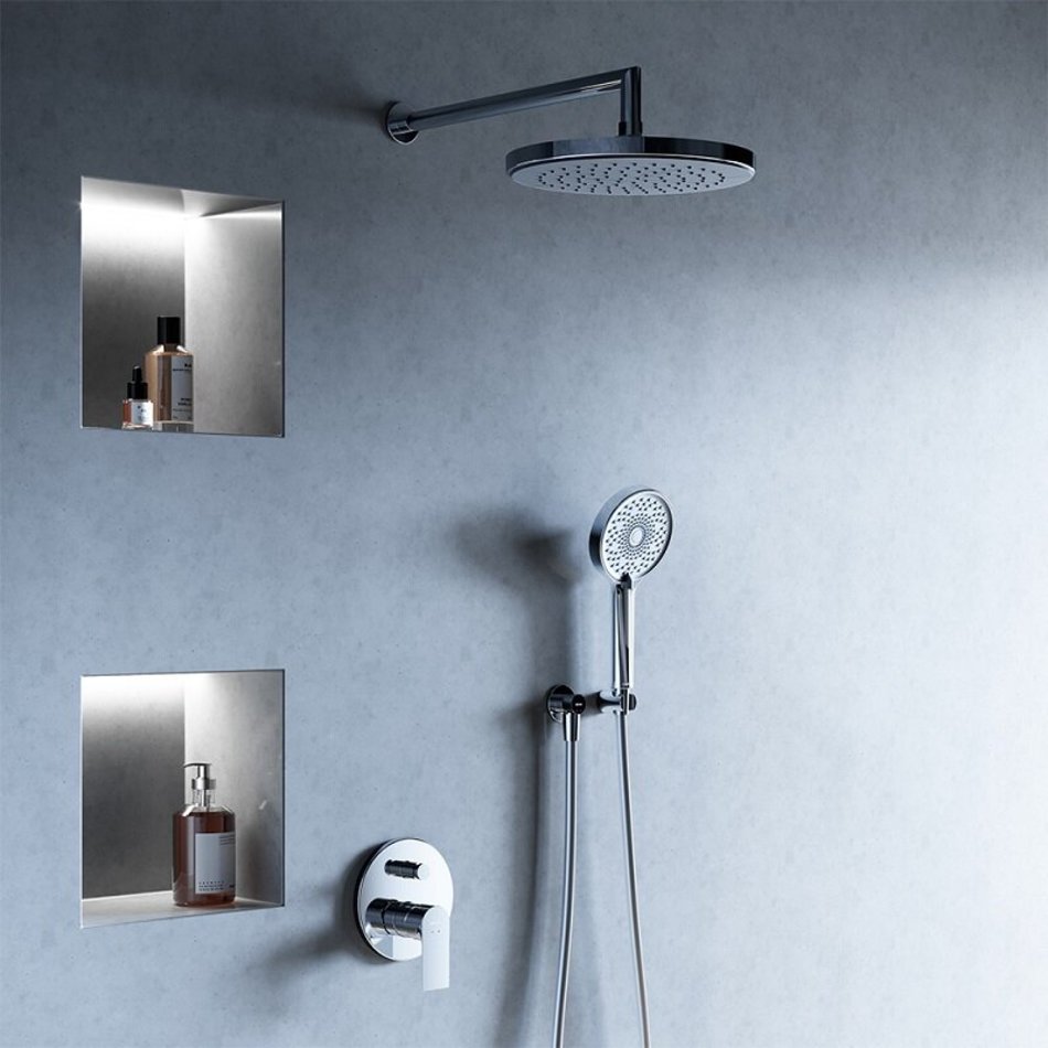 Встраиваемая душевая система из коллекции Apollo станет центром притяжения ванной комнаты. Тонкие линии и четкие грани в сочетании с массивными формами создают исключительную коллаборацию стиля. Полностью скрытые коммуникации: практичное и современное решение, которое соответствует минималистичному скандинавскому стилю. Ничего лишнего. Увеличенные душевые лейки и 3 режима ручного душа позволят полностью насладиться душевыми процедурами - взбодриться утром и расслабится вечером. Верхний душ диаметром 250 мм, ручной душ диаметром 125 мм. Керамический картридж Light Flow обеспечивает плавное управление ручкой смесителя и оптимальную регулировку температуры и мощности потока. Инновационное покрытие High Gloss надежно защищает хромовую поверхность смесителя от мелких повреждений и сохраняет ювелирный блеск на долгие годы.