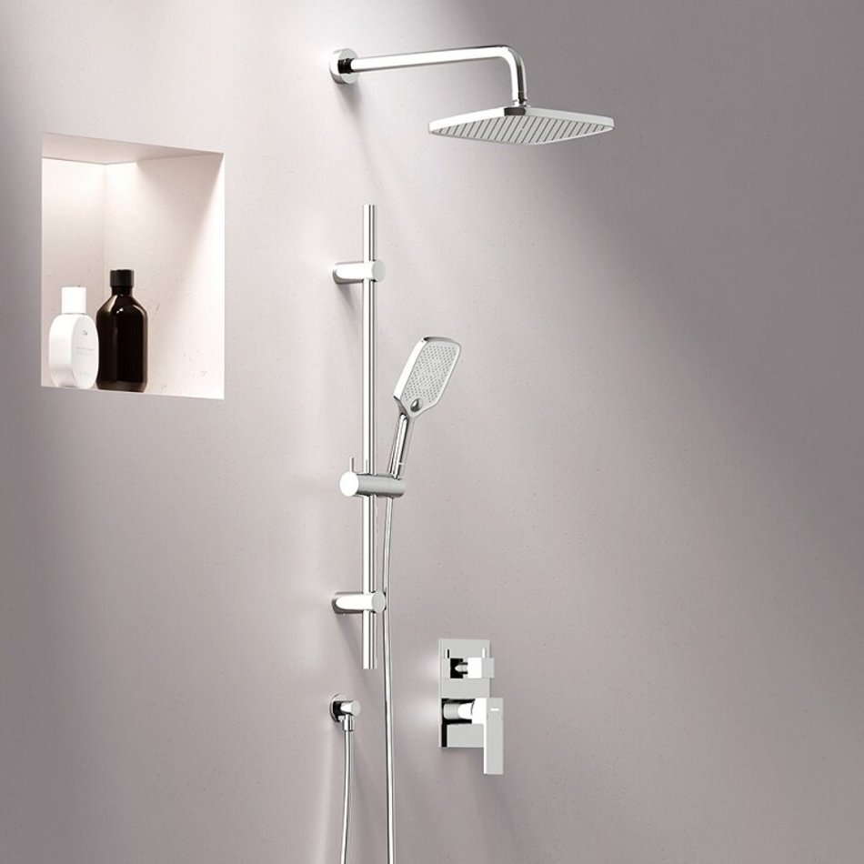 Простая и минималистичная на первый взгляд, она чрезвычайно функциональна и удовлетворит даже самого искушенного пользователя. А полностью скрытые коммуникации освободят дополнительное пространство для реализации самых смелых дизайнерских идей.Настоящее SPA прямо у вас дома: увеличенный размер тропической лейки с регулируемым углом наклона и 3 режима ручного душа сделают ваши ежедневные ритуалы незабываемыми.